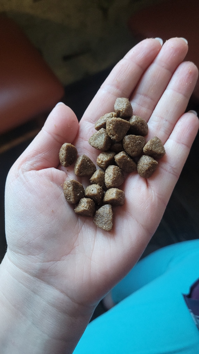 Твердоватые гранулы на мой взгляд, по сравнению с предыдущим кормом, но наш малыш грызёт, значит нравиться????