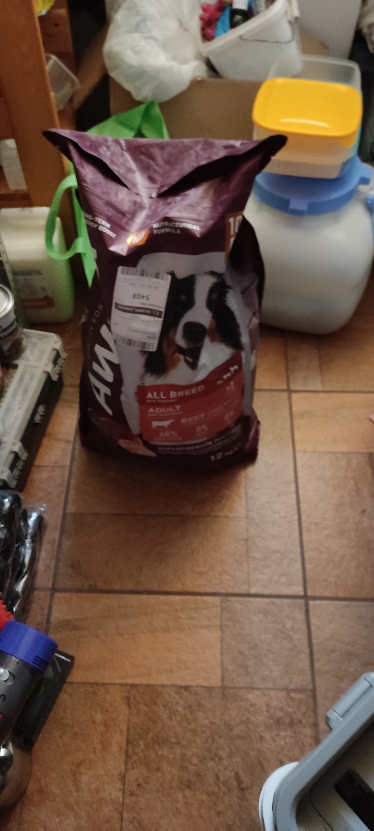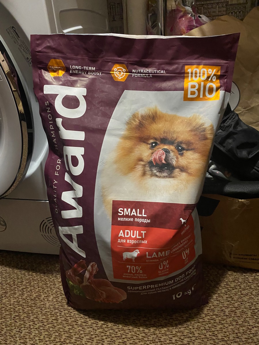 Случайно взяли этот корм в зоомагазине, когда закончится наш привычный. Собаке он понравился, аллергии не вызвал. Решили взять большую упаковку. Корм приехал в своем родном мешке, не разорван, срок годности в норме, гранулы ровные. Идея с липучкой отличная, не надо ничего изобретать. Запах приятный. Собаке (француз) зашёл вкус. А мне нравится, что корм усваивается - выход несравнимо меньше входа